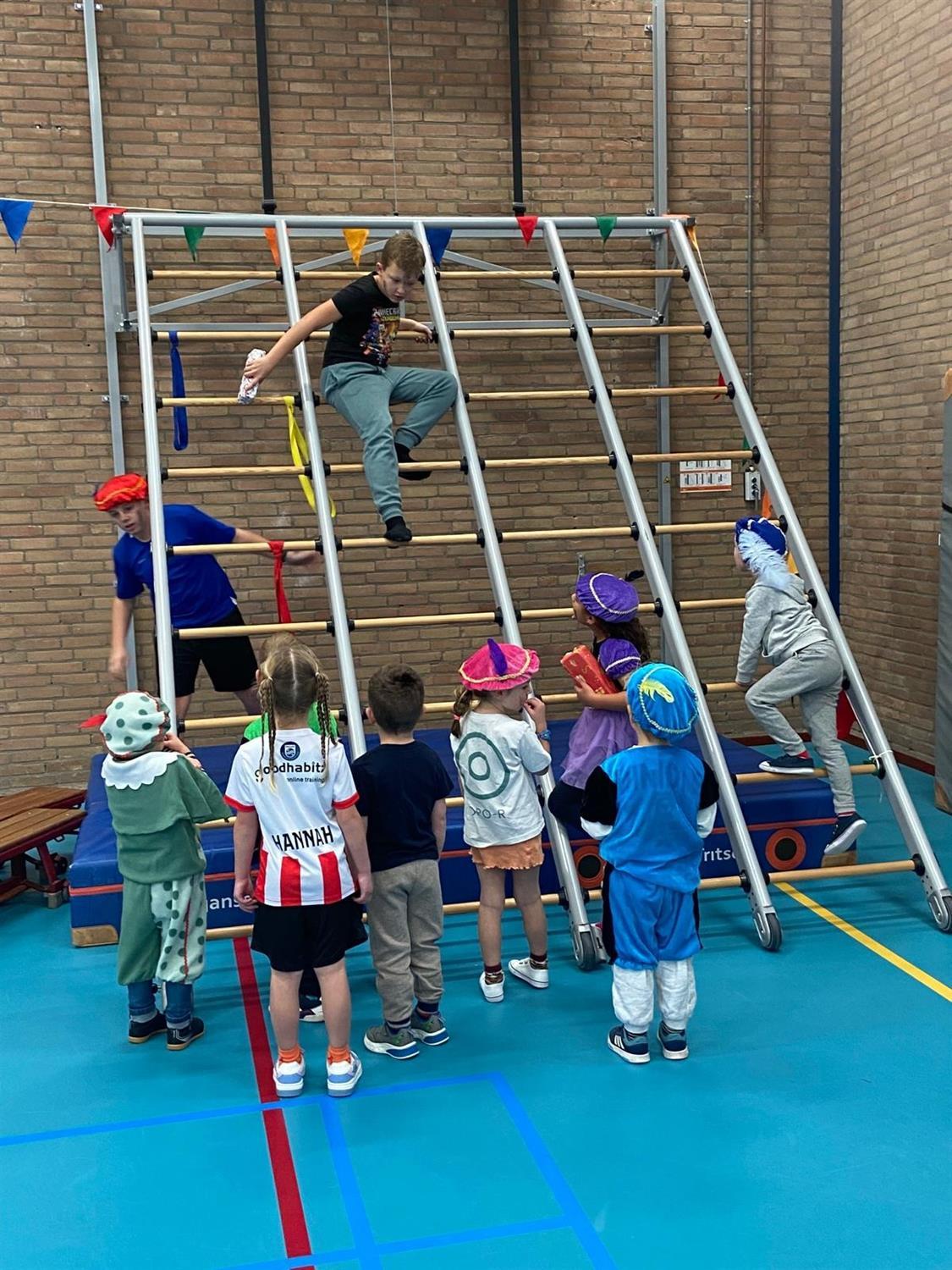 De leerlingen van groep 8 hebben deze pietengym zelf georganiseerd en gegeven aan de leerlingen.